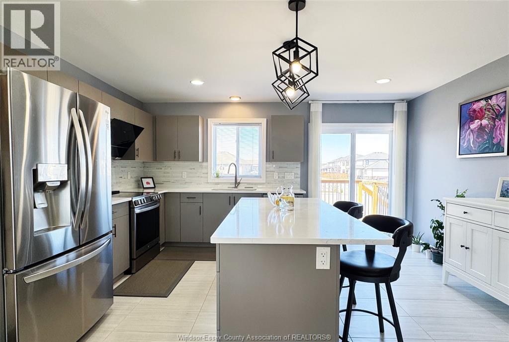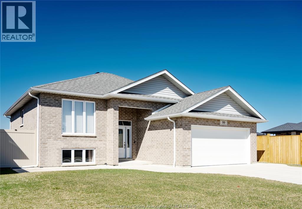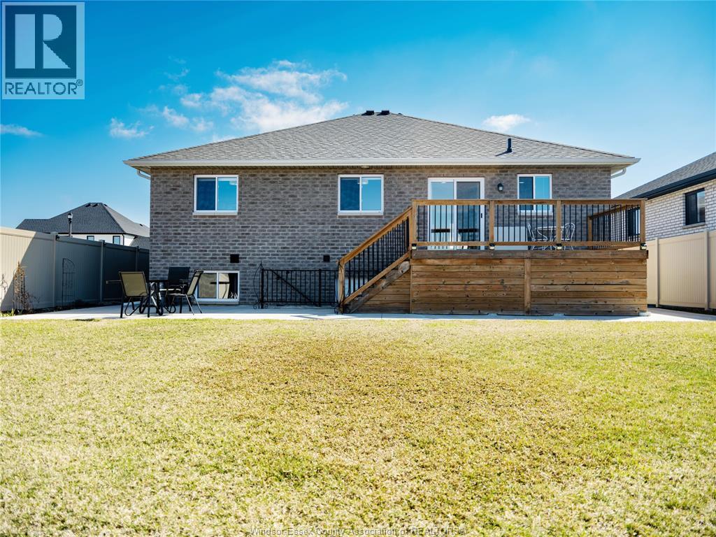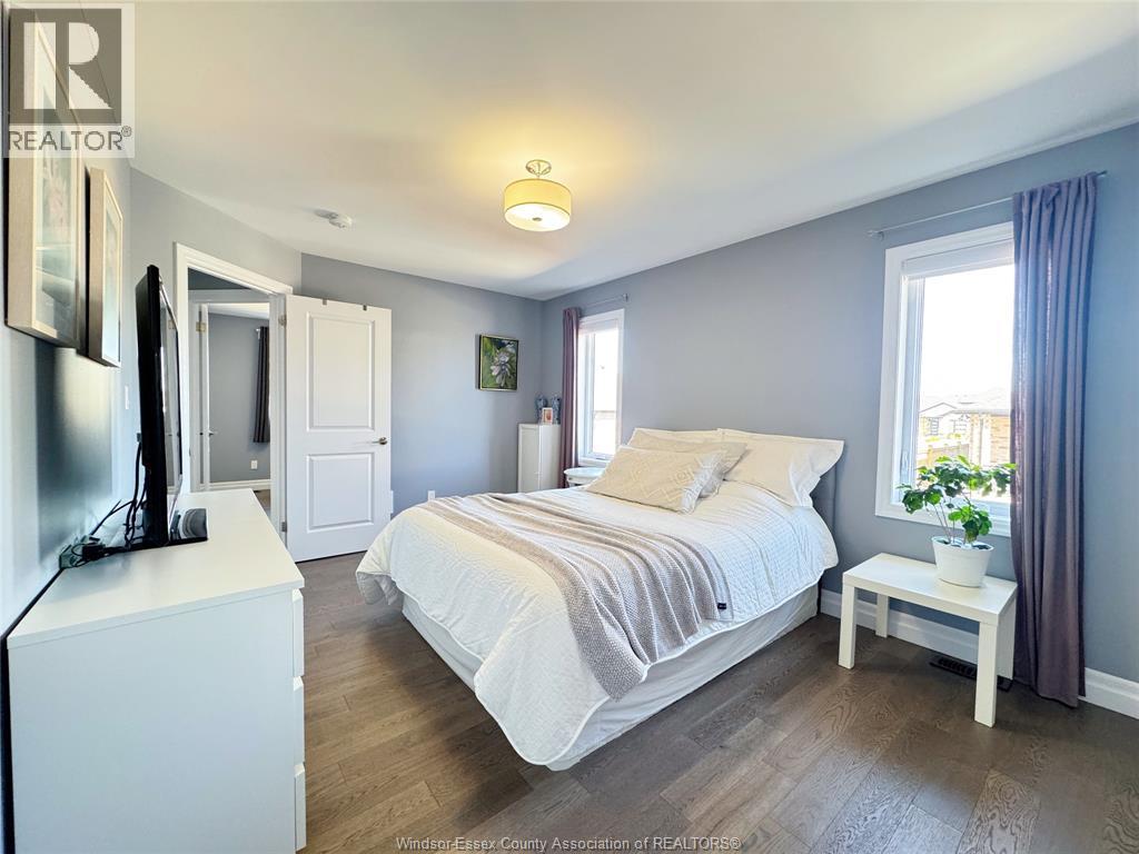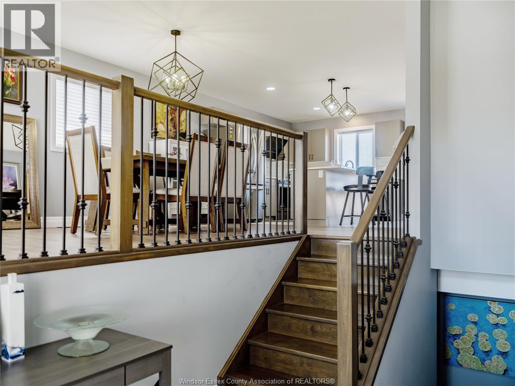 Located in the desirable kingsbridge neighbourhood in amherstburg, this well-maintained 2021 raised ranch by pc custom homes offers modern living with built-in income potential. Featuring 3+2 bedrooms and 3 full baths, including a primary ensuite, the main level boasts hardwood flooring and a bright open-concept layout with a stylish kitchen, dining area, and access to a fenced, landscaped backyard. Enjoy a rare open rear view with no direct neighbours behind. The fully finished lower level includes a separate entrance, second kitchen, family room, 2 bedrooms, full bath, and laundry—ideal for extended family or rental use. Currently tenanted at $1,800/month. Conveniently located near schools, parks, shopping, and historic downtown amherstburg. Still under new home warranty for added peace of mind. (id:4555)