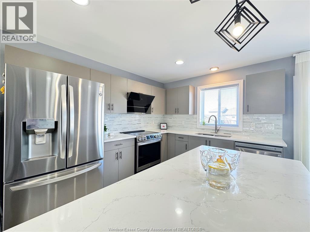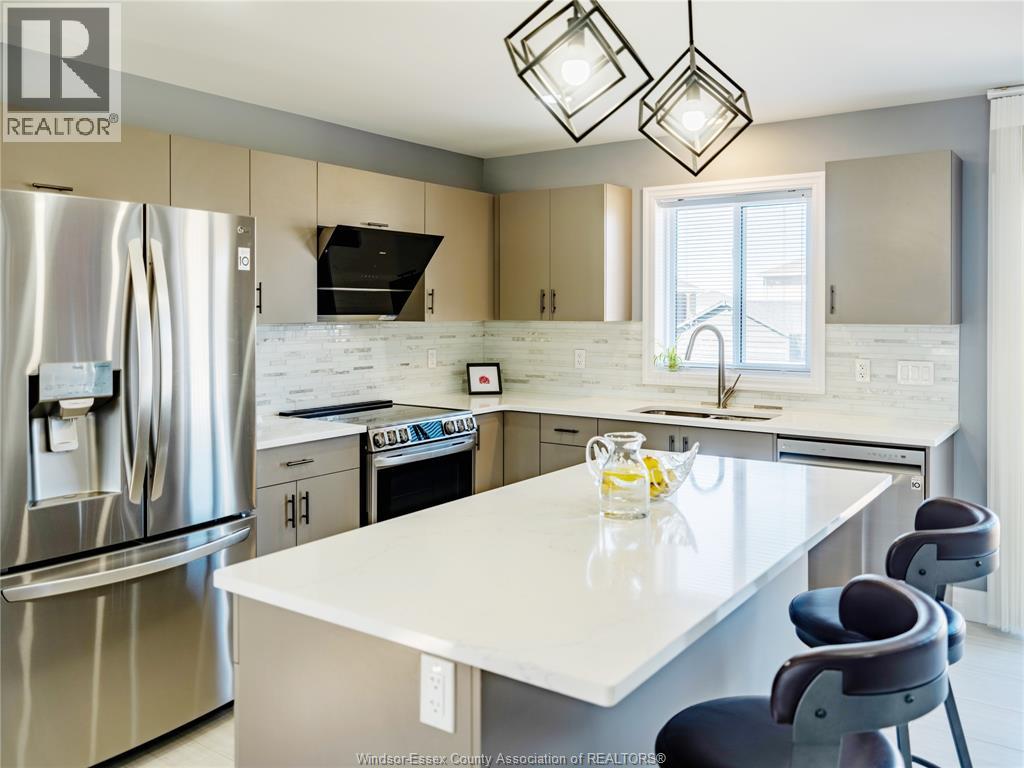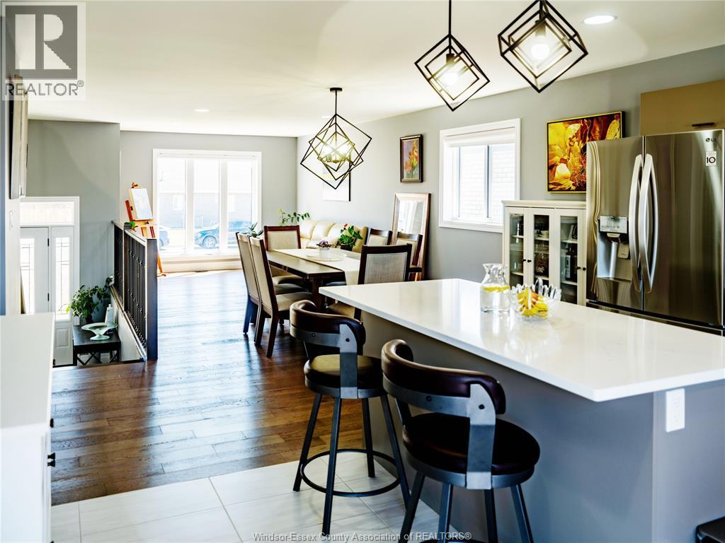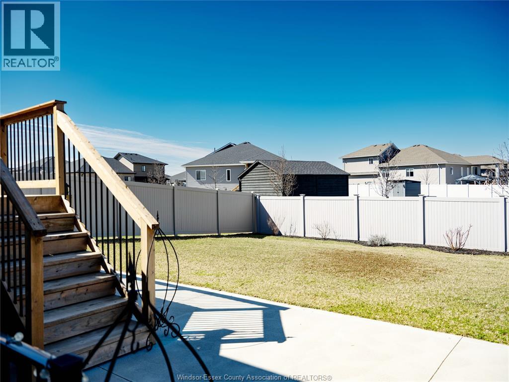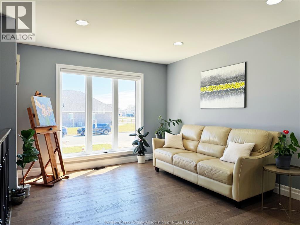 Located in the desirable kingsbridge neighbourhood in amherstburg, this well-maintained 2021 raised ranch by pc custom homes offers modern living with built-in income potential. Featuring 3+2 bedrooms and 3 full baths, including a primary ensuite, the main level boasts hardwood flooring and a bright open-concept layout with a stylish kitchen, dining area, and access to a fenced, landscaped backyard. Enjoy a rare open rear view with no direct neighbours behind. The fully finished lower level includes a separate entrance, second kitchen, family room, 2 bedrooms, full bath, and laundry—ideal for extended family or rental use. Currently tenanted at $1,800/month. Conveniently located near schools, parks, shopping, and historic downtown amherstburg. Still under new home warranty for added peace of mind. (id:4555)